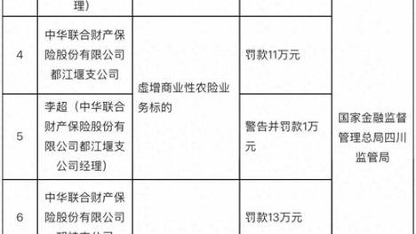 编制虚假资料、虚构业务等,中华财险四川多家分支机构及相关人员被罚