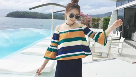 NO.1西班牙风格的一款上衣,很时尚的一款衣服,简洁一字领,上身超亲肤。方领穿脱也是非常方便,七分袖设计袖口处皱褶拼接喇叭袖的感觉,非常时尚。插肩袖设计,加上宽宽的喇叭袖子,上身非常有气质。彩色条纹的拼接设计…