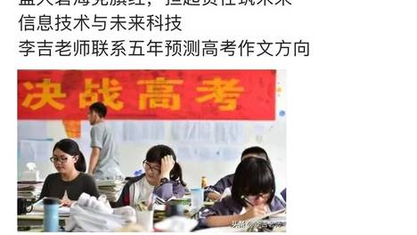 李吉老师每一年都会在5月末,写一些对高考作文的预判。作文写好了,对语文提分真的是一个关键,提前预习几篇类似的文章,学生在考场上针对不会发懵,写起来才会得心应手,老师算今年已经连续押对6年高考作文。今年老师和大…