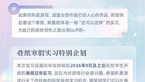 实习招聘 | 叠纸游戏2026寒假实习特别企划火热进行中!