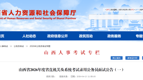 山西省2026年度省直机关及系统考试录用公务员面试公告