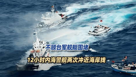 只剩下最后4公里就登陆!不顾台舰艇围堵,海警舰两次冲近海岸线