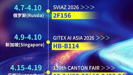 01— SVIAZ 2026 俄罗斯国际通信及消费电子展览会 展会时间:2026年4月7日-10日 展会地点:莫斯科季米里亚泽夫中心 展位号:2F156 02— GITEX AI ASIA 2026 展会时间:2026年4月9日-10日 展会地点:新加坡滨海湾金沙展览与会议中心 展位号:HB-B114 03— 第139届中国进出口商品交易会(广交会) 展会时间:2026年4月15日-19日 展会地点:广州琶洲会展中心 展位号: 19.2 H25-26 / 19.2 I23-24 #展会季#平板电脑#笔记本电脑#投影