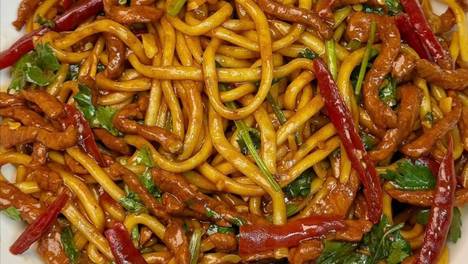 香辣肉丝炒面:一碗唤醒味蕾的烟火气