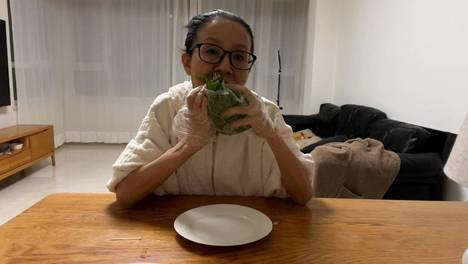 76斤瘦子吃饭真香啊!猜猜菜叶里面包的是什么