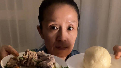 75斤中年瘦子一镜到底吃玉米面发糕晚餐