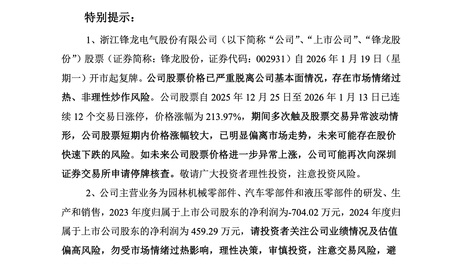 自去年12月24日晚,“人形机器人第一股”优必选(09880.HK)宣布花16亿“入主”锋龙股份后,锋龙股份股价已涨了245.38%,总市值也翻了3倍。时间拉回到2025年末,优必选发布公告称,将以“协议转让…