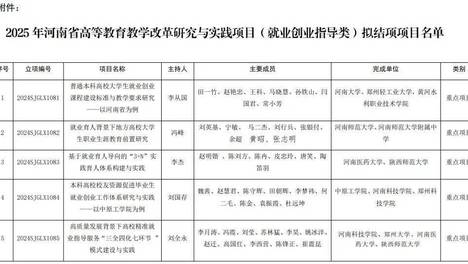 根据《河南省教育厅办公室关于开展河南省高等教育教学改革研究与实践项目(就业创业指导类)结项鉴定工作的通知》(教办学〔2025〕290号)要求,各高校对2025年申请结项项目开展了结项鉴定。自公布之日起5天内,…