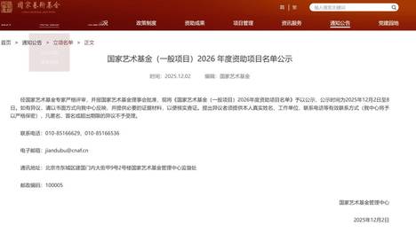 12月2日,国家艺术基金网站公示了“国家艺术基金(一般项目)2026年度资助项目名单”,共计879项,包括大型舞台剧和作品创作项目136项、中小型剧(节)目和作品创作项目201项、美术组织创作项目16项、美术…