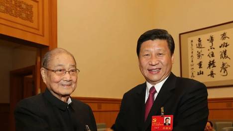1991年4月,江泽民同志、宋平同志(前排左二)等与参加党建理论讨论会的代表座谈。1990年7月中下旬,宋平同志(前左二)来到内蒙古自治区巴彦淖尔市临河区马场地村了解基层党支部建设情况。1990年8月14日,…