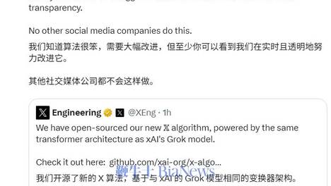 X 平台开源推荐算法,Grok 驱动排序逻辑公开