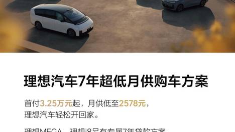 理想汽车7年超低月供购车方案:首付3.25万元起