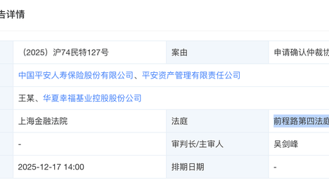 中国平安起诉华夏幸福,将于12月17日在上海金融法院开庭