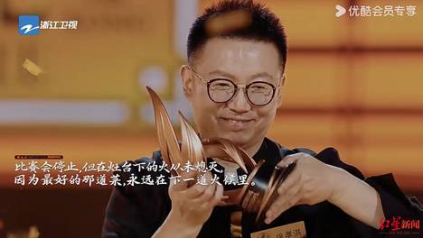 星厨阵营中的“先锋川菜领军人”、四川旅游学院教授徐孝洪斩获年度总冠军。▲徐孝洪获得《炙热游戏:百厨大战》年度总冠军在最后的厨王对决中,徐孝洪的决赛菜品为“寒江独钓”。“年糕是米制品,我想到了同样是米制品的叶儿…