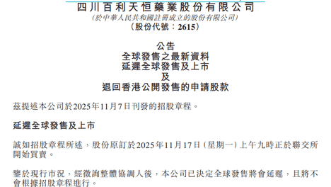 百利天恒宣布延迟港股上市,将退还公开发售的申请款项
