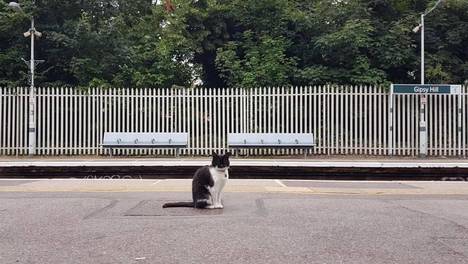 这猫有家不待,还有小伙伴也不陪人家,就爱天天跑车站给人查票!