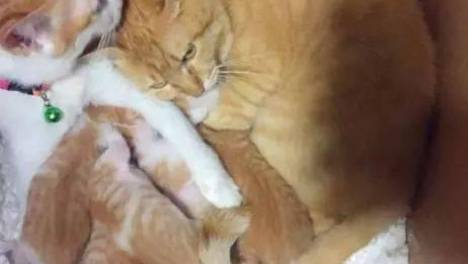 两只橘猫天天秀恩爱,谁知母猫生下6个崽,看到猫的毛色主人想哭