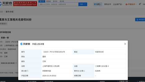 搜狐娱乐讯据天眼查天眼风险信息显示,近日,虞书欣与王某相关名誉权纠纷案件新增开庭公告,原告为虞书欣,该案将于2026年3月26日在上海市普陀区人民法院开庭审理。…
