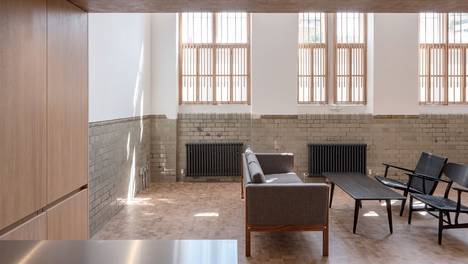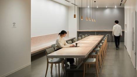 凯克萨银行(CaixaBank)的旗舰办公室All in one位于一座建于20世纪60年代的包豪斯风格的建筑内。建筑师一方面以该包豪斯建筑的造型和配置为基础来确定办公室的空间布局和色调;另一方面将餐饮空间和金融空间的设计思路结合在一起,不仅打造出一个革命性的办