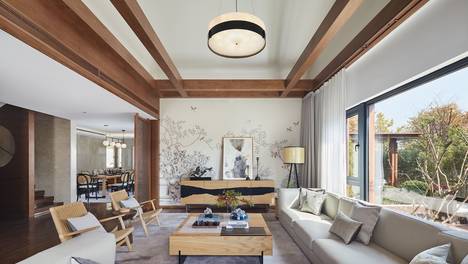 尚层装饰,灰调原木风私宅,本案女业主范姐是一位资深驴友,比起恢弘壮观的古建筑、色彩斑斓的人文景观,她更喜欢大自然里那一泓静谧的蓝色湖水。范姐说:“那种蓝色的湖水,纯净地让人内心深处产生巨大的震撼。”