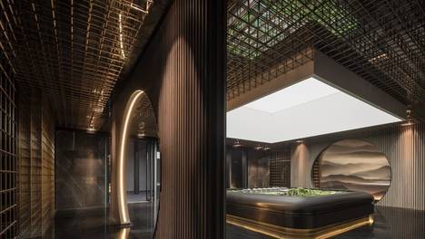 “千呼万唤始出来,犹抱琵琶半遮面”的朦胧之美是为本案设计思路之开篇,也是设计者“气质东方”系列作品提出的“诗意、传承”的初次实践。