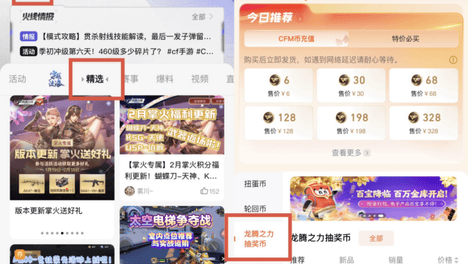 尊享商城内为CFer们准备了各个档位的龙腾之力抽奖币,每个档位按照尊享价正常累计火线幸运点与VIP成长值的同时,还有掌火龙腾之力特权附赠。首先,在首页中选择精选,下拉即可看到商城,点击商城即可进入尊享商城,选…