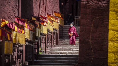 日升日落,斗转星移,在拉萨城中无数寺庙承接着来自世间无尽的香火时,这里仅有一山,一寺,一僧。每日循环反复地工作生活,远离了喧嚣,也耐住了寂寞……