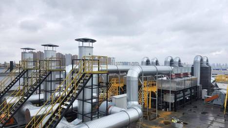 国内半导体前三碳化硅企业东莞新基地投产!生产中产生的氨气、酸雾、VOCs 等废气,需高效治理才能合规排放 —— 天得一量身打造 19 套废气治理系统,总处理风量达 60 万 m³/h,助力企业合规投产!