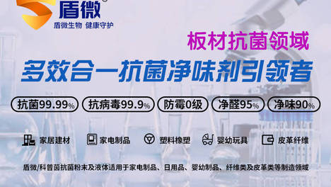 盾微(佛山)生物科技有限公司主营的板材类防霉抗菌助剂广泛应用于三聚氰胺板和装饰纸中,持久杀灭制品表面的霉菌和细菌,减少微生物对制品和使用者的危害,在定制衣柜、定制办公桌、定制家具、装饰纸、 定制木地板、 防火板、浸渍纸饰面人造板、水性聚氨酯树