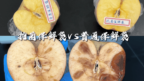 实验效果对比——添加抗菌剂的保鲜袋可明显抑制水果腐烂