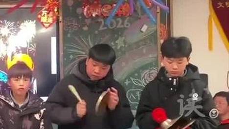班级举行元旦班会,同学们敲锣打鼓吹唢呐表演才艺,网友:一个班能凑齐这些也是不简单