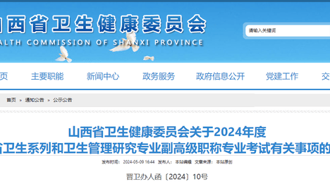 山西省2024年卫生系列和卫生管理研究专业副高级职称专业考试的通知
