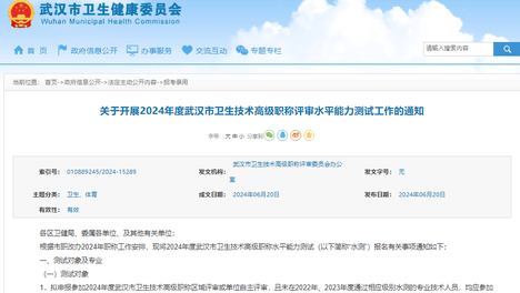 关于开展2024年度武汉市卫生技术高级职称评审水平能力测试工作的通知