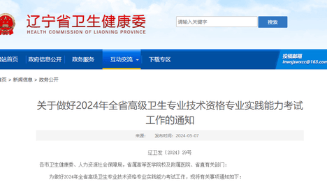 辽宁省关于做好2024年高级卫生专业技术资格专业实践能力考试工作的通知