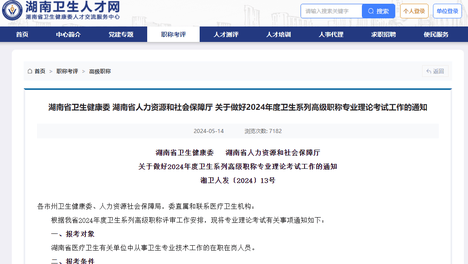 湖南省发布 2024年度卫生系列高级职称专业理论考试公告