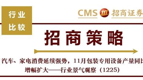 【招商策略】汽车、家电消费延续强势,11月包装专用设备产量同比增幅扩大——行业景气观察(1225)