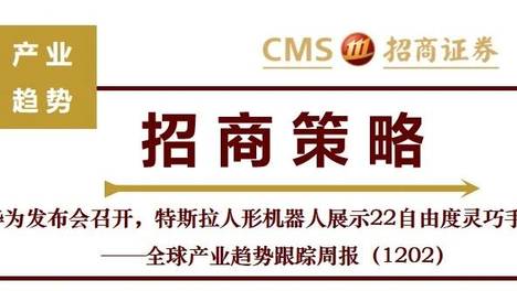 【招商策略】华为发布会召开,特斯拉人形机器人展示22自由度灵巧手——全球产业趋势跟踪周报(1202)